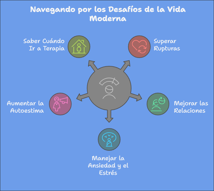 Las rupturas son una de las experiencias más dolorosas a nivel emocional. Las personas buscan estrategias para gestionar el duelo, la soledad y la reconstrucción personal. 📊 Aprox. 10,000-15,000 búsquedas diarias en español.